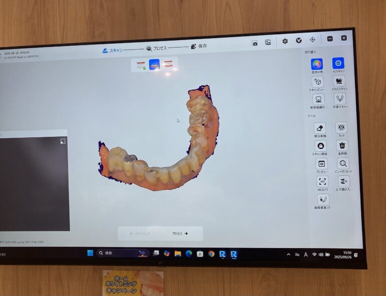 またデジタル型取りを併用して大画面モニターにて、自分のおくちの中をより知る事が可能です。